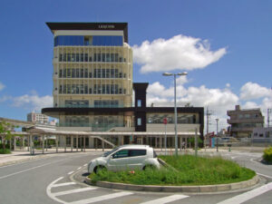 国道330号線沿いモノレールおもろまち駅前に建つオフィスビル。