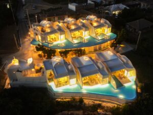 古宇利大橋や屋我地島が一望できるロケーション 水盤やプールを通して海を眺められるよう設計しました アーチや曲面を多様しこだわりの詰まった一棟貸しのホテルです